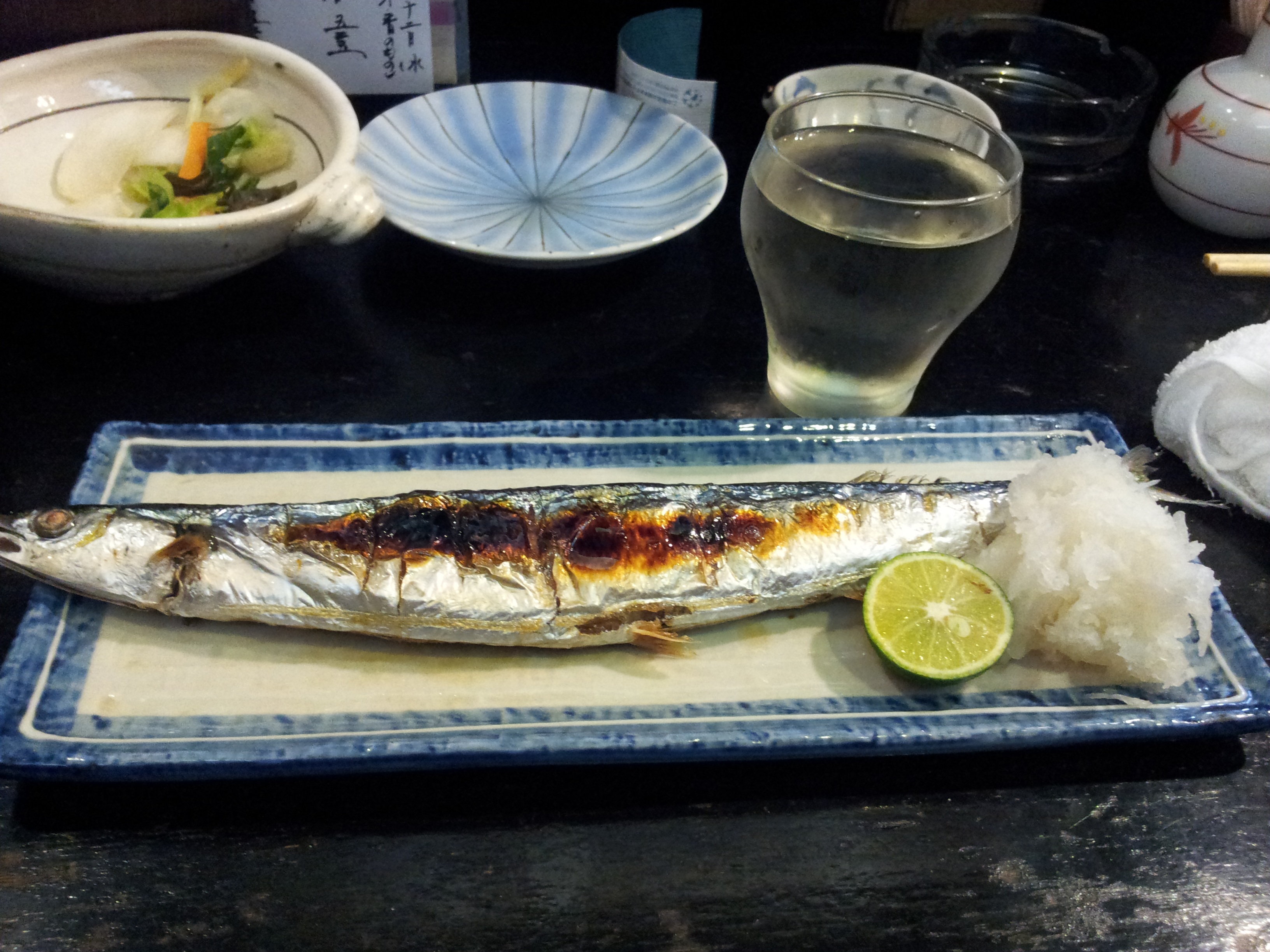 目黒の小室氏のオフィスに寄った帰り、「目黒のさんま 菜の花」に行った。今日はこのまま帰るつもりだったが「さんま食べていこうよ!」の一言でコロリ。菜の花は4回目くらいだが、美味い、安い、雰囲気良し、の三拍子揃ってる。