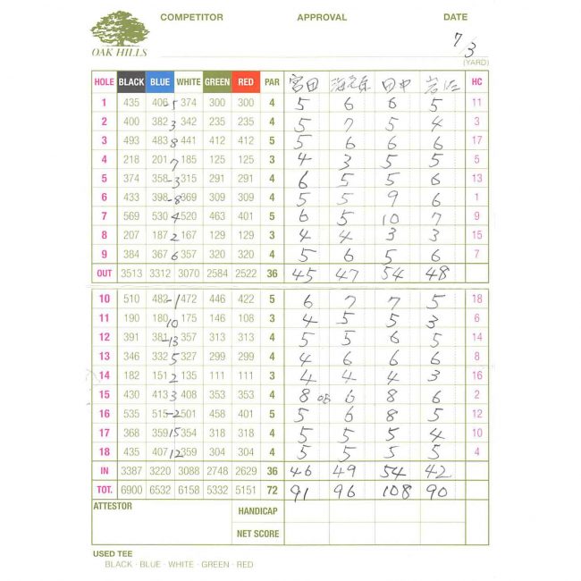 15番で左に引っ掛けてOBを打ったのが痛かった。