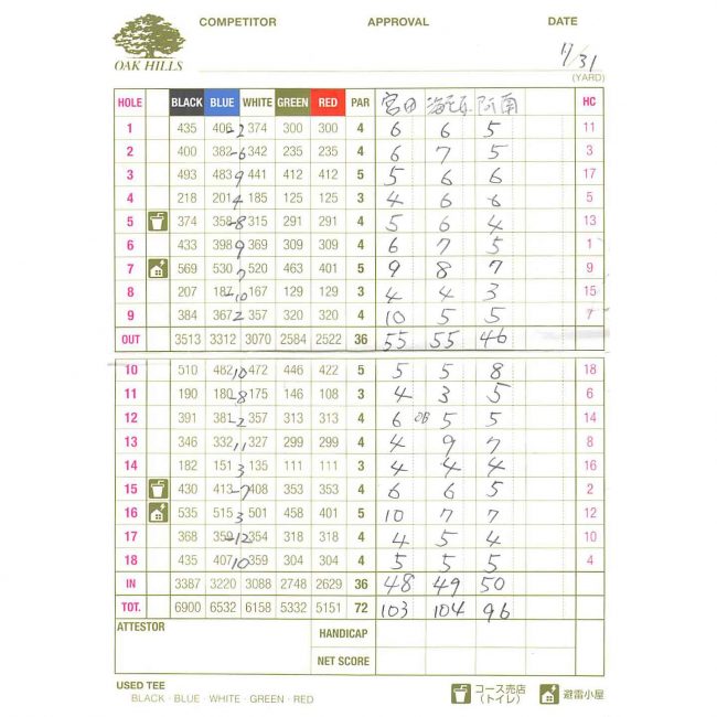 田中さんは風邪で不参加となったが、楽しい仲間と楽しいゴルフ。