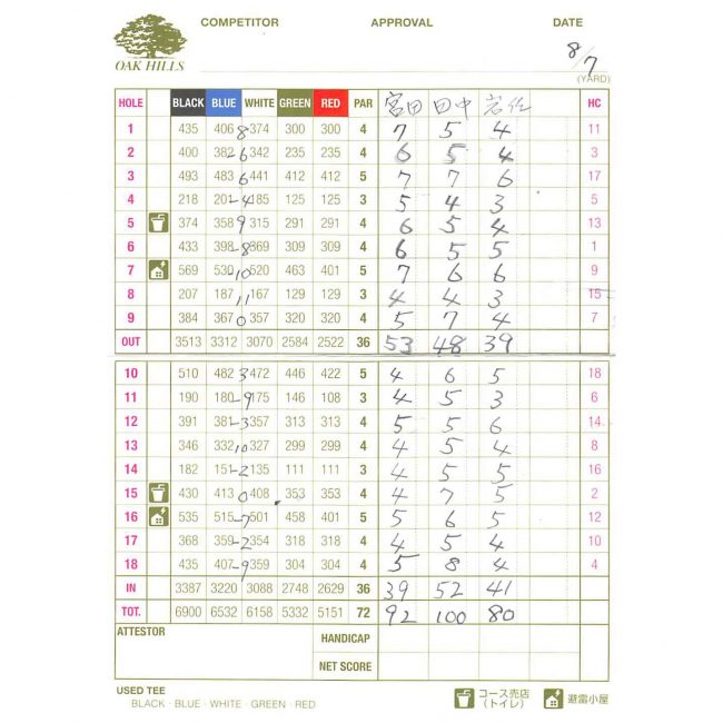スコアは数えてなかったが、18番でボギーを取った瞬間に岩佐さんが「39だ!」と教えてくれて、気がついた。