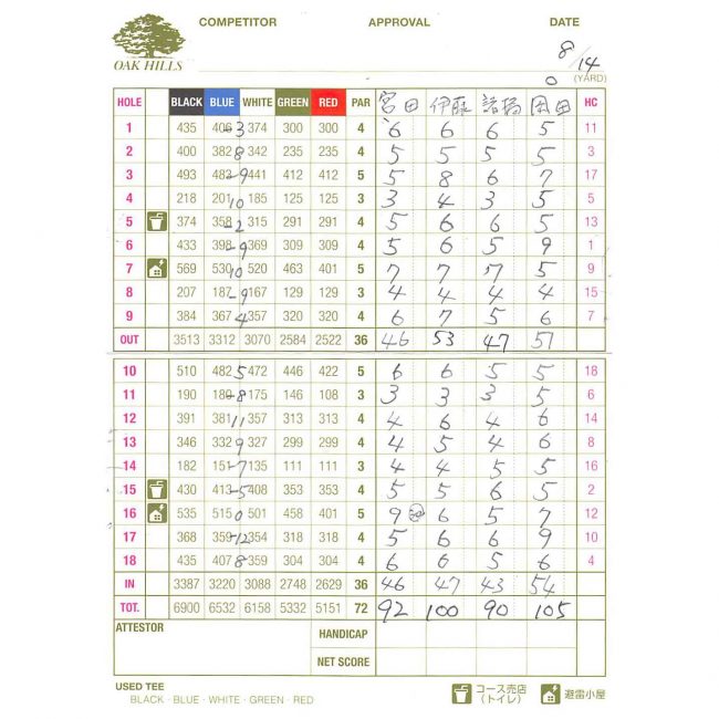ミスショットもたくさんあったし池にも入れたし・・・、それでもこのスコアで回れたので良しとしよう。