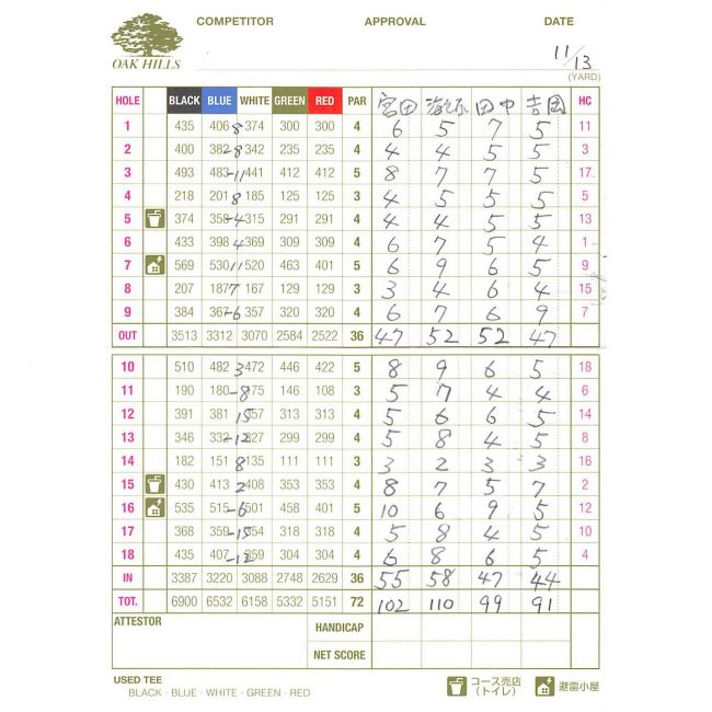 いい当たりだが左へ引っ掛けてのトラブルや、ラフからの池超えで2回池ぽちゃするなどのミスが響いた。