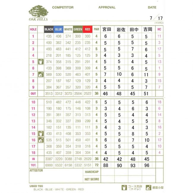 OUT 46、 IN 42、 トータル88。 ブラックティーからのベストスコアが出た。 【同伴者】